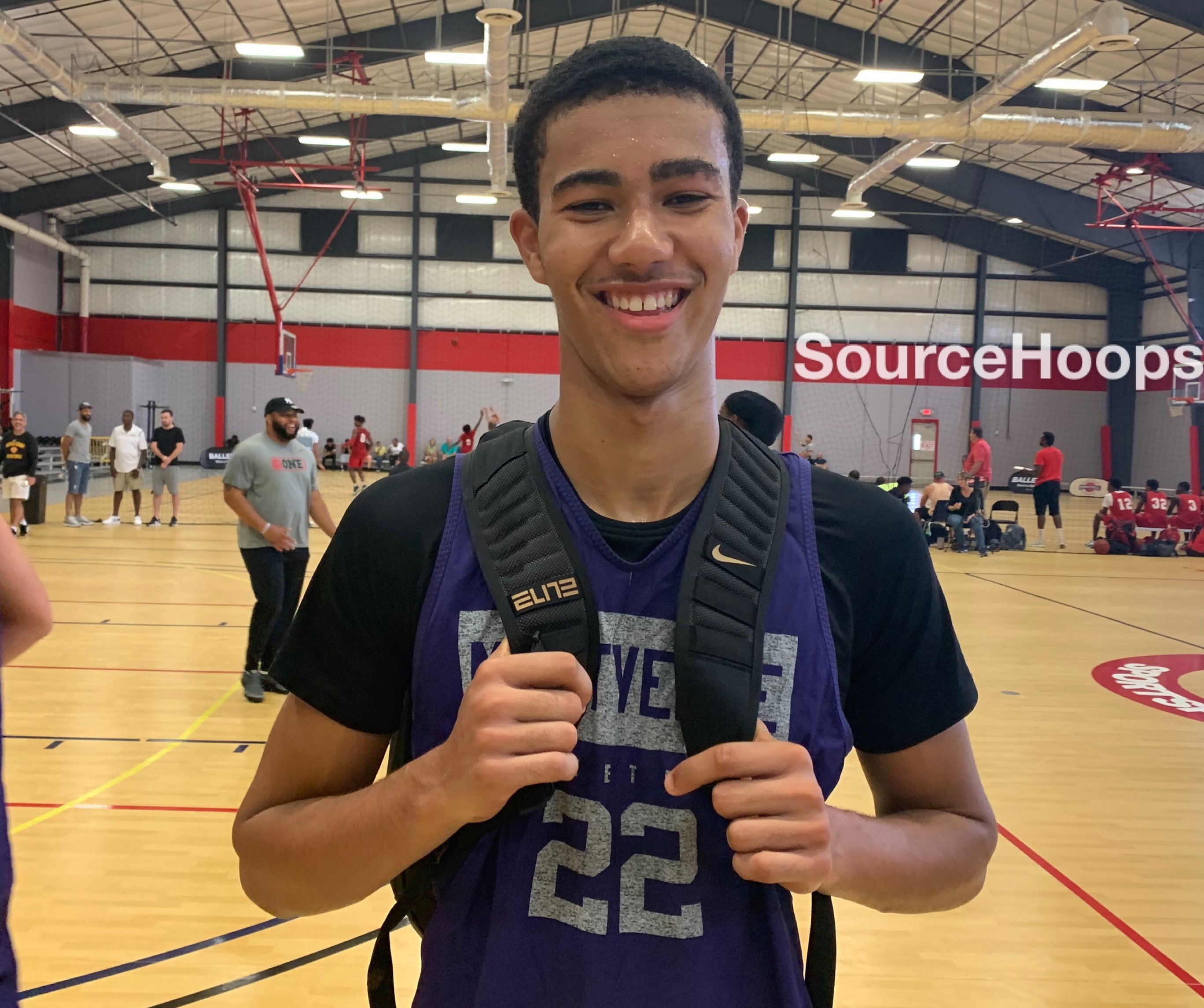 The Eagles, a perennial national power, look to continue their upper-echelon level of dominance based on what we saw on Saturday.  Likely without four senior starters this past weekend, the talent that did hit the floor was high-level.  It wasn’t a tall group, as only 6’8 sophomore Caleb Houston (pictured above) stood taller than 6’4.  That was fine as the Eagles gang-rebounded at both ends of the floor and displayed a blistering transition game and well as an aggressive defense.  Houston showcased an ability to play both inside and out and has greatly improved his perimeter shooting since last season.  Zeb Jackson, a 6’3 senior from Ohio already committed to Michigan, made a very impressive debut.  Extremely quick to the bucket with the ball and an ability to finish in traffic, Jackson produced more than his fair share of highlight finishes.  While he was 0-3 from the perimeter in the game we watched, the shots looked good going up.  Dariq Whitehead, a 6’4 sophomore, and Langston Love, and 6’4 junior from Texas, also proved to be scoring threats from the arc to the basket.  Their individual strength and athletic ability helped the Eagles stay competitive on the glass at both ends of the floor.  Ryan Nembhard, a 6’1 junior, played well in his role as a facilitating point guard.  He took care of the basketball, made good decisions on the move, and played harassing defense when guarding the ball.